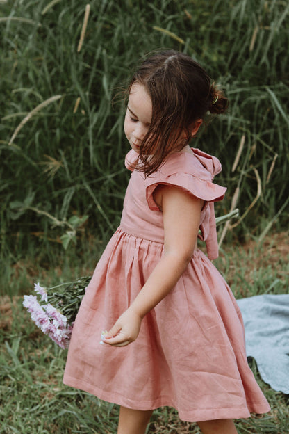 Introducing our Blossom Bow dress, made from a luxurious 100% linen fabric that is both soft and breathable. This dress is perfect for any occasion, whether it's a special event or a frolic in the garden!
